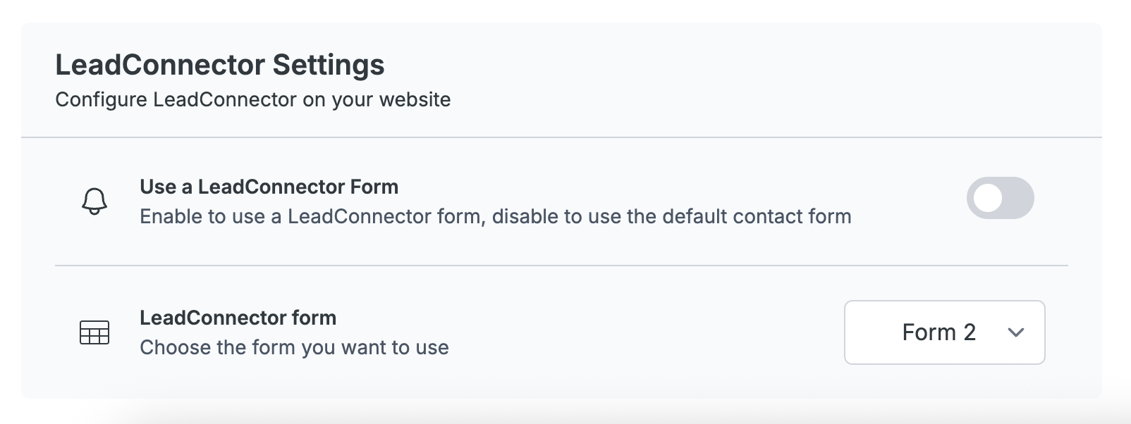In this section you can select a HighLevel/LeadConnector form to be displayed on your property website. The selected form will replace the default contact form, providing a more customized experience for your visitors.