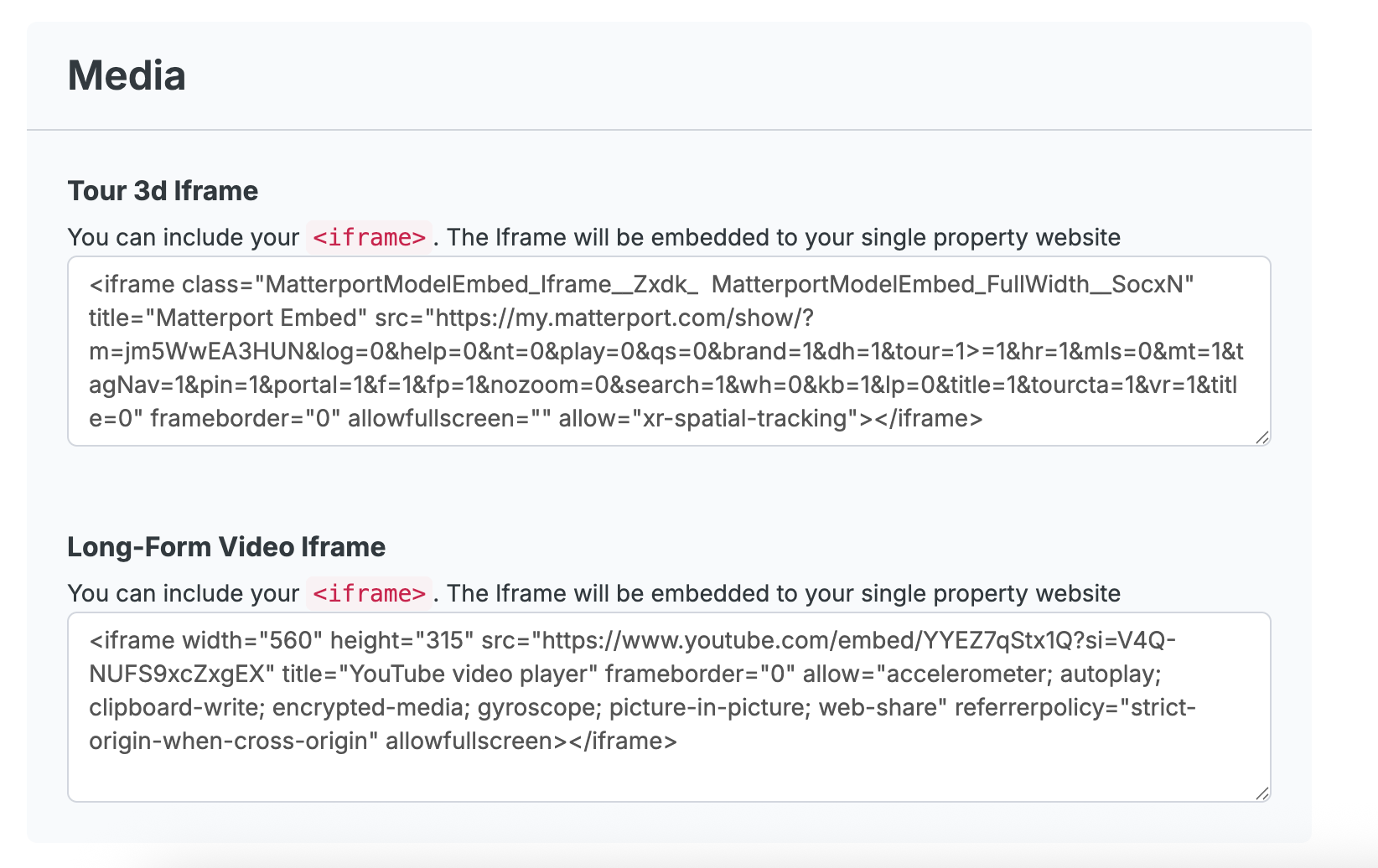Paste your iframe code in the relevant section, and it will display seamlessly on your property page.