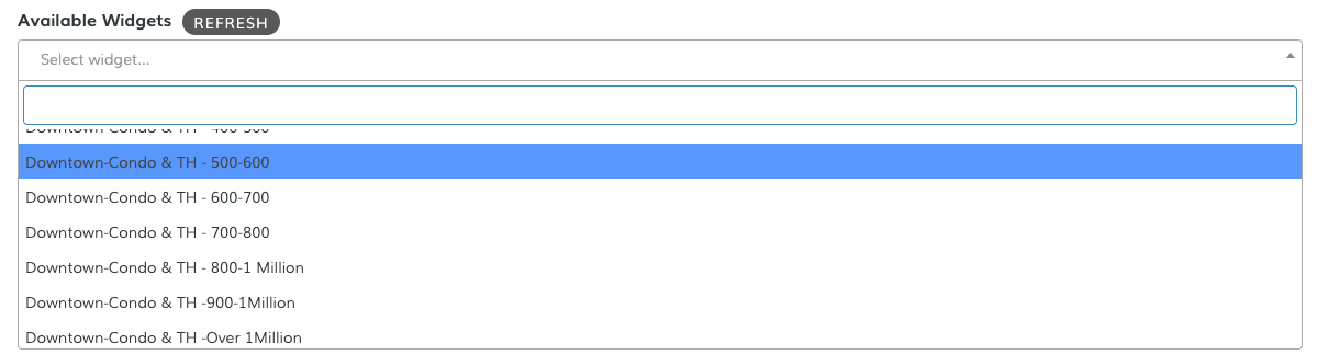 Select the IDX Widget you want to use under Available Widgets. If you don't see it in the list, just click on the Refresh button and see if it shows up.