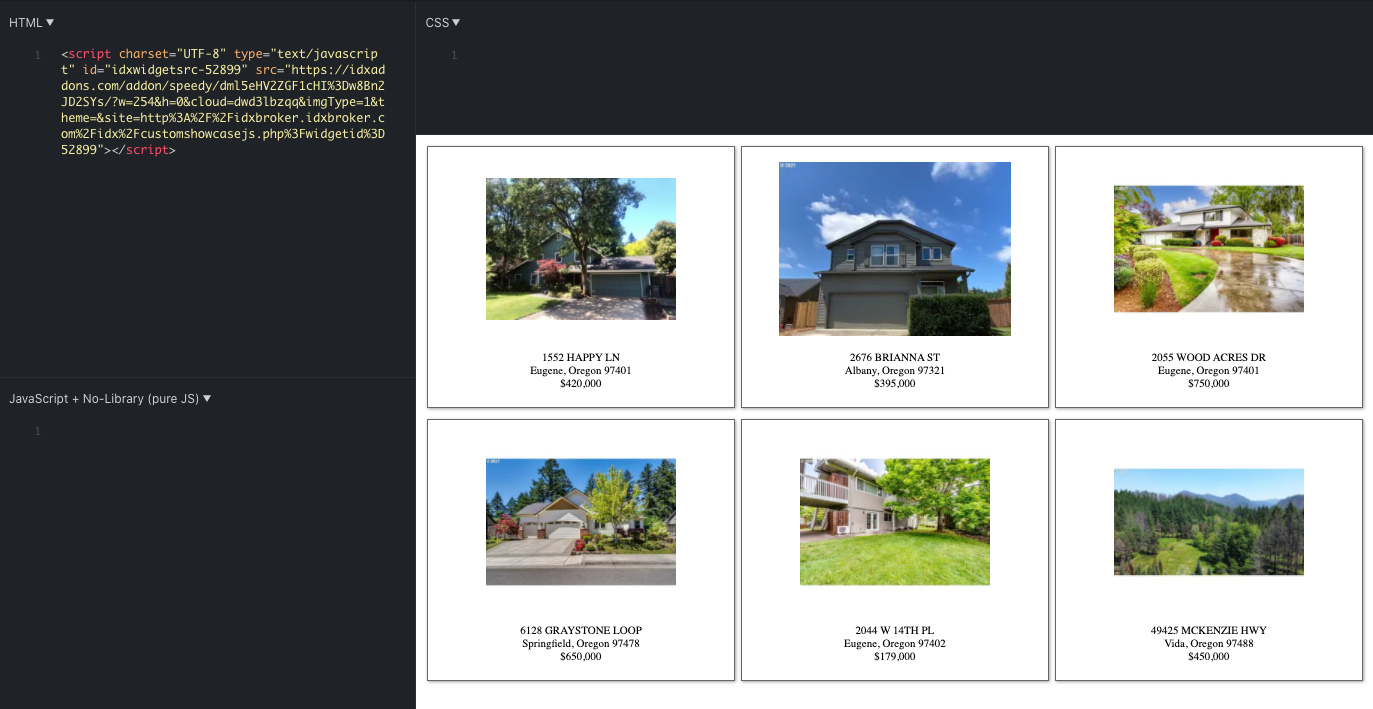 We applied the Speedy IDX Widget and ran the new code on JSFiddle. Once the widget showed up, we opened the image in a new tab to test it out.