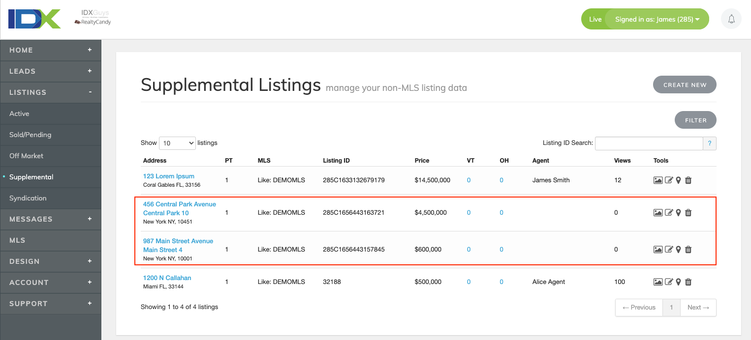 Go to IDX Broker Supplemental Listings to check that the listings were added