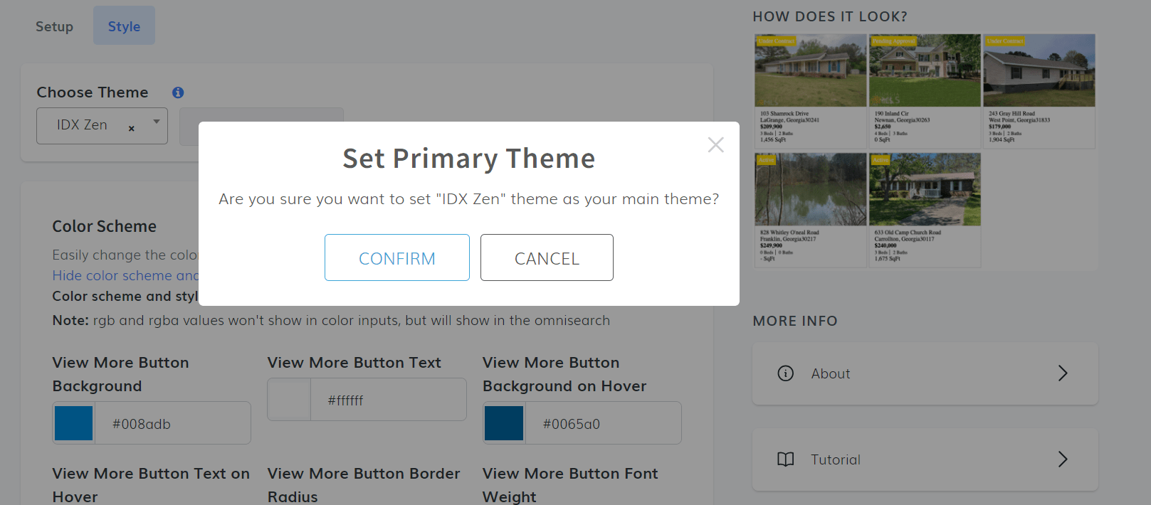 Once you've selected your theme, you can select it as the Primary Theme. A pop-up will appear to confirm your choice.
