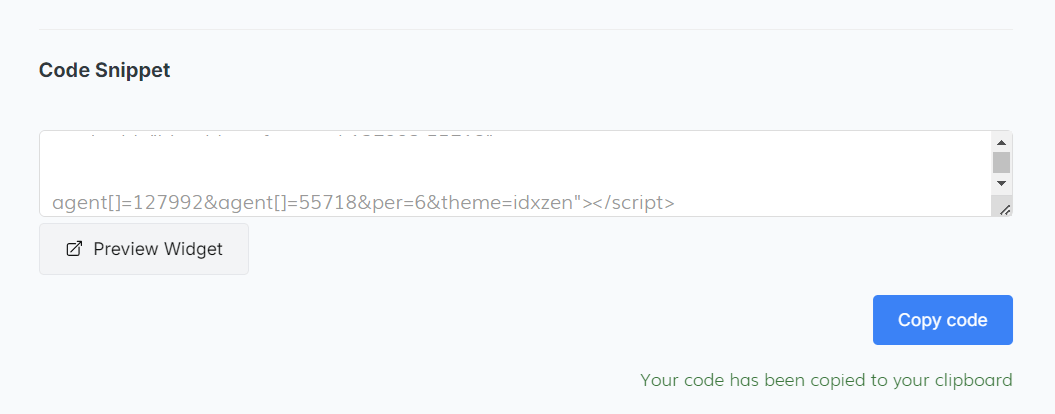 After filling out all the information, a code snippet will appear. Copy the code and paste it into your site to see the selected changes.