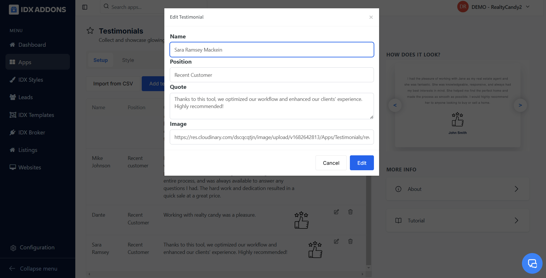 Create a New Testimonial- Click the "Create Testimonials" button to get started.