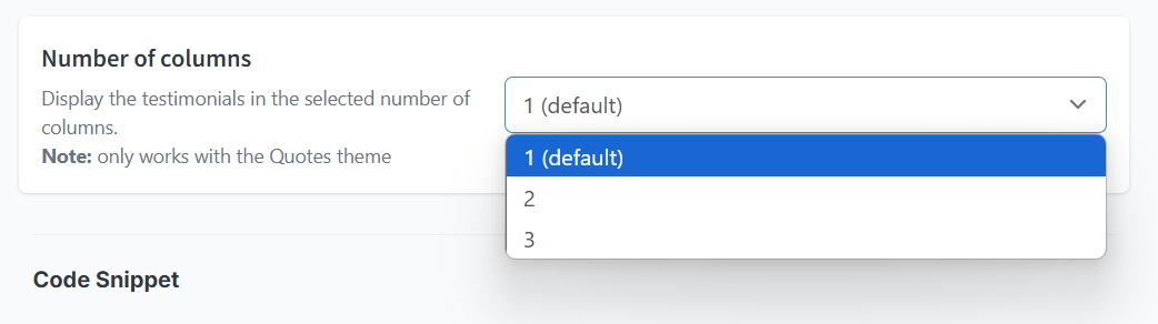 Set the number of columns to display testimonials. This option only works with the Quote template and allows between 1 and 3 columns (default is 1).