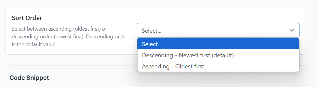 After completing all settings, copy the provided code snippet to integrate the changes into your website.
